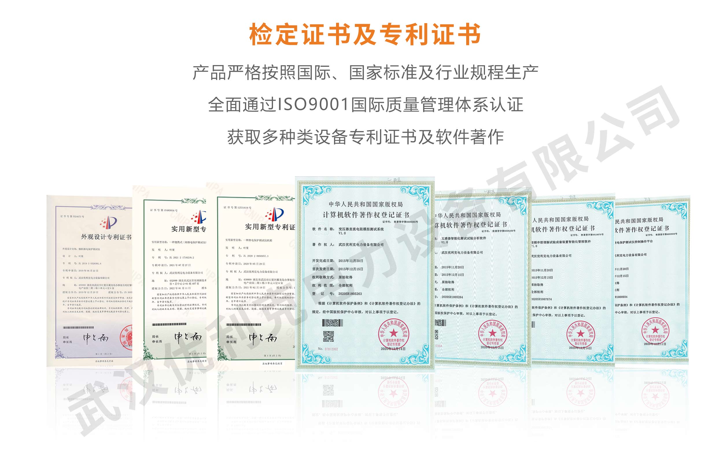 企業產品嚴格按照國際、國家標準及行業規程生產,通過國家、各省級、市級電力研究所、計量中心及電力權威部門的檢測,全面通過ISO9001國際質量管理體系認證、中華人民共和國制造計量器具許可證、GB/T19001-2016質量管理體系要求、GB/T24001-2016環境管理體系要求、GB/T45001-2020職業健康安全管理體系要求。