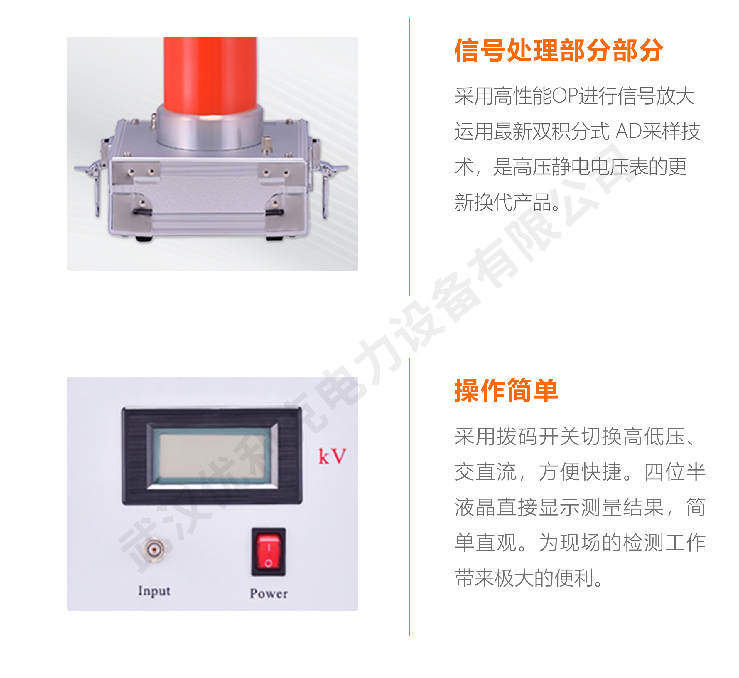 信號處理部分,采用高性能OP進(jìn)行信號放大,運(yùn)用最新雙積分式 AD采樣技術(shù),四位半液晶顯示,最高分辨力達(dá)到0.001kV,是高壓靜電電壓表的更新?lián)Q代產(chǎn)品。